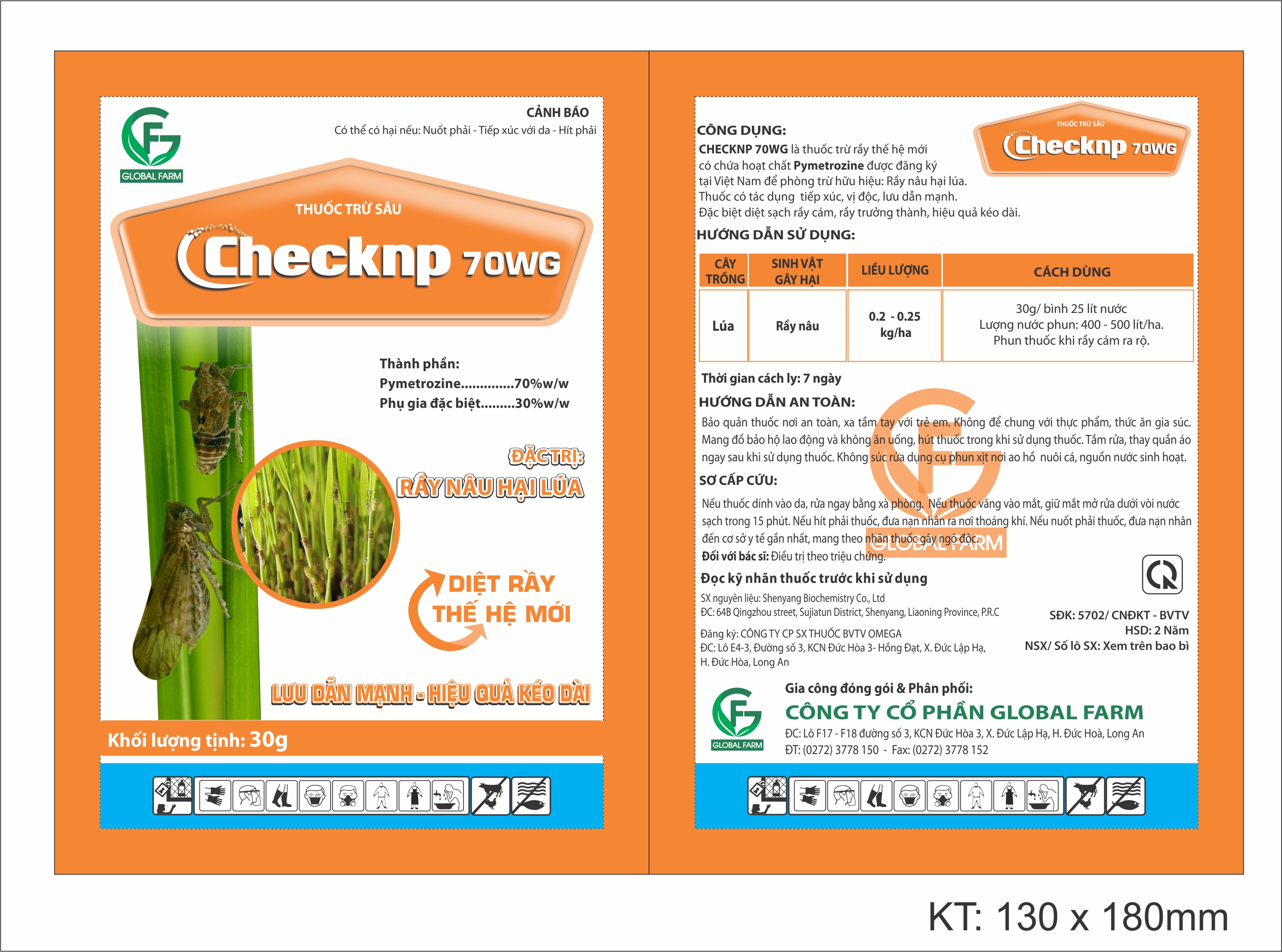 Quy cách: gói 30g thùng 200 gói Checknp 70WG