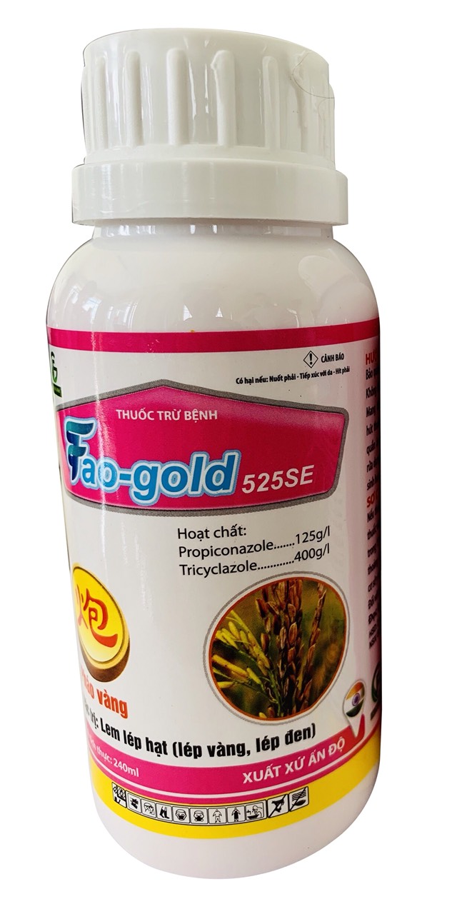 •Faogold 525SE đặc trị đạo ôn lá, cổ bông, nhánh gié, cuống hạt với tính năng lưu dẫn mạnh, tầm soát và tiêu diệt nấm bệnh từ bên trong, hạn chế sự hình thành và phát tán bào tử mới. Hiệu quả trừ bền bỉ, kéo dài, giúp chặn đứng ngay mầm bệnh và giảm thiểu số lần phun.